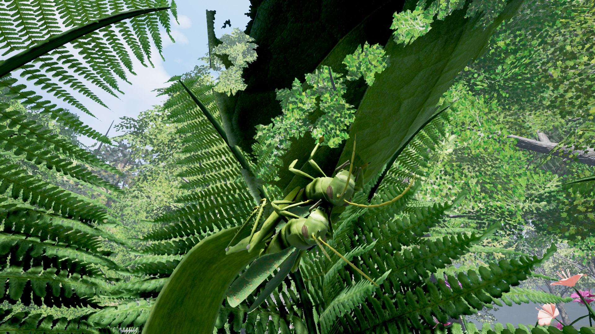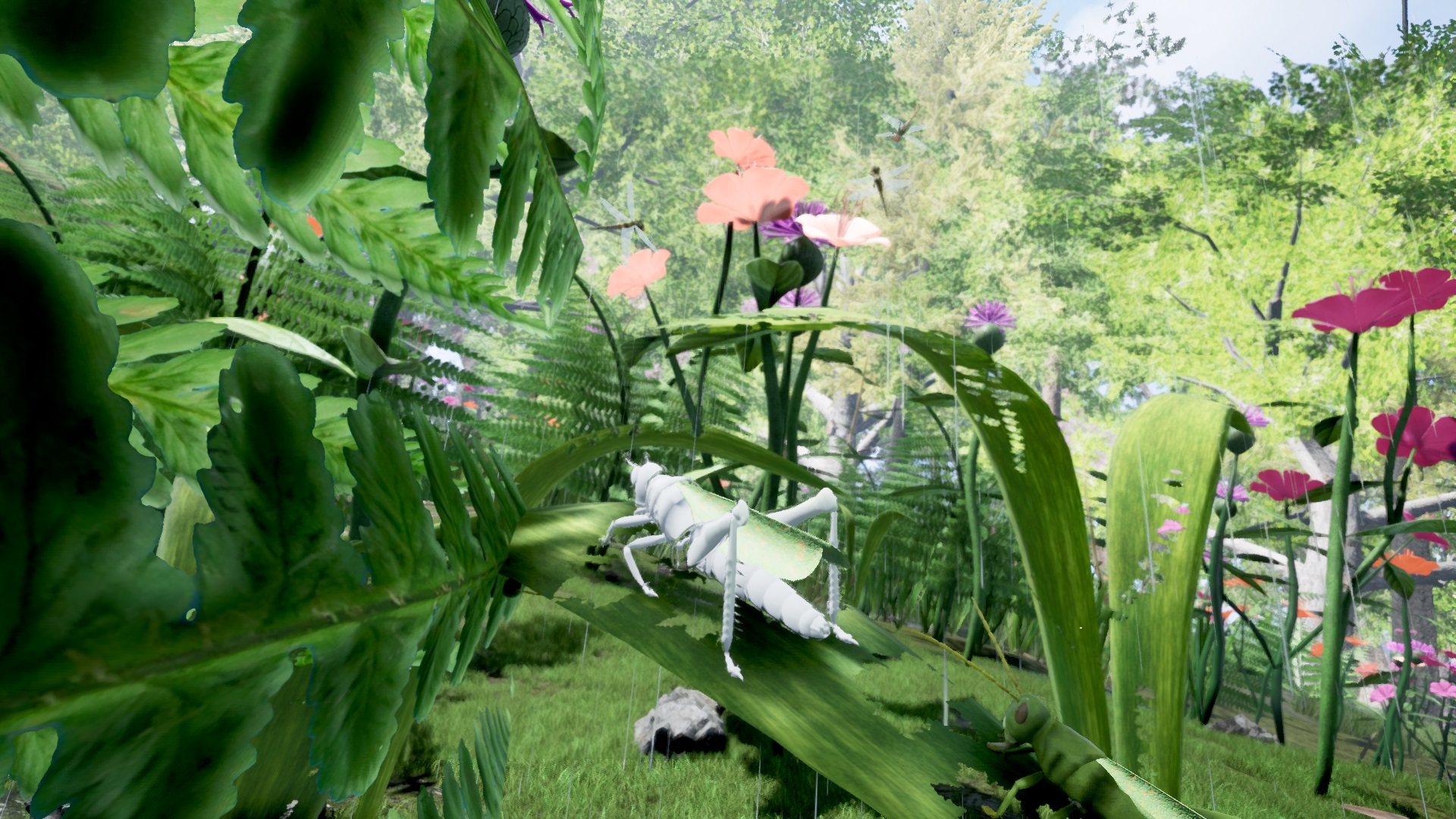 Hatch as a tiny Grasshopper nymph on grass and survive fearsome predators along with your swarm family of Grasshoppers! Eventually you will grow wings, find a mate and start the lifecycle all over again. The Grasshopper species’ unique traits include its ability to jump and crush predators as a nymph with its spiked hindlegs, while as a winged adult it can also fly. This update supports infinite playthroughs via multiple generations!